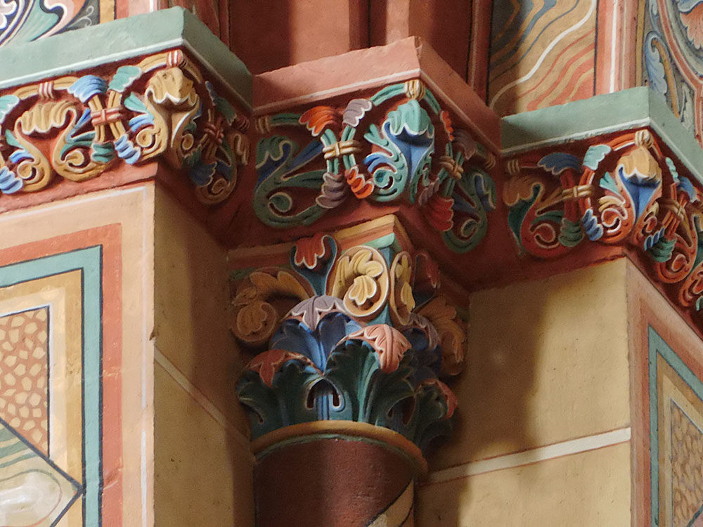 Sind auch die Symbole der christlichen Religion geblieben (Löwenportal und Fries an der Abside), so sind doch alle Einzelformen selbständig erfunden, ohne auf die Antike zurückzugreifen. Besonders die Hauptgesimse am Chor mit Bogenfries, Akanthusblattreihe und grosser Hohlkehle sind so schön disponiert, dass sie als formvollendet gelten können und nur ein weiteres Naturstudium dazu gehört, um auf dieser Grundlage die mustergültigen gotischen Hauptgesimse des XIII. Jahrhunderts zu schaffen.