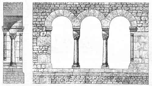 Von dieser Kirche mehre Hundert Fuß entfernt, hat sich noch eine gleichzeitige interessante Capelle erhalten, welche nur theilweise aus einem Thorbaue vorspringt und durch Cloaken, welche sich umherziehen, fast unzugänglich geworden ist.
