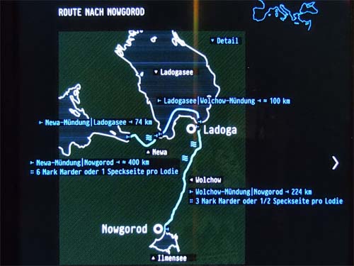 In dem nämlichen Winter kam Großfürst Alexander, und mit ihm der Mitropolit von Kiew, Cyrillus, noch Nowgorod; der Großfürst zog mit den Susdalern gegen die Tschuden, besiegte sie, kehrte mit vielen Gefangenen zurück und entließ den Mitropoliten von Kiew nach Nowgorod; er selbst aber zog auf unbekannten Wegen, so daß die Nowgoroder nicht wußten, wo und wohin der Fürst gieng. Einige zwar glaubten, daß er gegen die Tschuden zöge; aber er gieng nach Koporje, von wo er die überflüßigen Leute entließ, und hierauf mit seinem Pereslawischen und Susdalischen Heer und mit den Nowgorodern gegen die Schweden und Jemen zu Felde zog, um ihrer vieler Unthaten, Beleidigungen und Einfälle willen; entschlossen, keine Feindseligkeiten weiter zu erdulden, wofern sie die bisherigen nicht vergüten würden. Der Marsch war so schlecht, daß man weder Tag noch Nacht sah, (sie zogen im Winter über den Ladoga-See gen Norden) und sie giengen über unwegsame Gebirge. Da sie angelangt waren, bekriegten sie die Jemen und alle am Meer gelegene Gebiete, und kehrten darauf mit vielen Gefangenen und mit Ruhm zurück; das Land ward berühmt durch den furchtbaren Feldzug Alexanders, und alle kamen