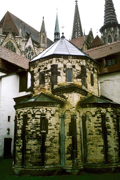 Demnach wäre die Krypta, die obendrein durch einen Blitzschlag im Jahre 1159 geschädigt wurde, und das Portal im Laufe von drei Jahren fertig gewesen: eine sehr kurze Bauzeit, selbst wenn man mit dem Neubau im Westen und Osten gleichzeitig begann.