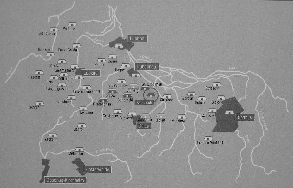 Hinweis: Das Originalwerk enthält keine Bilder. In den Text wurden Fotos und Informationen aus der Slawenburg Raddusch von 2005 und neuzeitliche Literaturhinweise zu Ausgrabungen im Niederlausitzer Braunkohlenrevier eingefügt. Die Einfügungen sind durch Kursivsschrift gekennzeichnet.