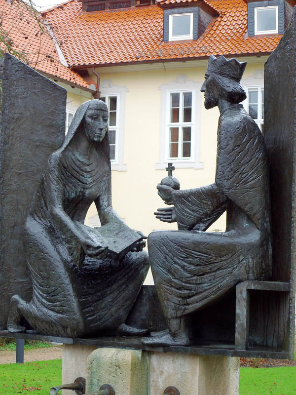 Es folgte die dritte Schwester Christina 897 und dieser Roswitha. Wie letztere sich besonders der Gunst König Heinrich I. erfreute, so konnte sich ihre, um 980 als Nonne im Stift lebende und durch ihre schriftstellerische Thätigkeit berühmt gewordene Namensschwester einer ausgezeichneten Fürsorge von Seiten seiner Tochter Gerberga II. rühmen. Diese wurde Aebtissin des Klosters, nachdem der vorgenannten Roswitha zunächst Windelgard gefolgt war, deren Amtsthätigkeit sich durch Erbauung der Marienkapelle auszeichnete. Sie ließ sich in Gemeinschaft mit der Canonissin Richardis die geistige Ausbildung der Roswitha (Hrotsvitha) angelegen sein, welche auch, obgleich jünger als dieselbe, bei ihr einen höheren Bildungsgrad anerkennt, wie·er einer königlichen Prinzessin gezieme. Unter Gerberg und während ihrer langen Krankheit wurde die strenge Zucht gebrochen, welche so lange den Ruhm des Stifts begründet hatte. Aus den dürftigen Mitteln, mit welchen Hathumoda und eine kleine Zahl gottgeweihter Jungfrauen sich auf das Nothwendigste hatten beschränken·müssen, war in hundertjährigem Zeitraume ein solcher Reichthum erwachsen, daß jetzt eine zahlreiche Jugend Gelegenheit zum Wohlleben fand.