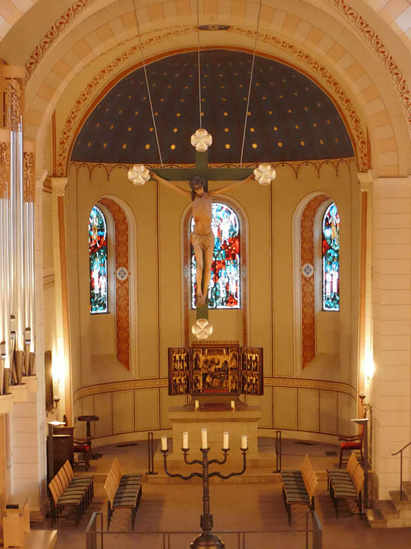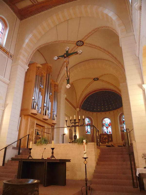 Von Farbenschmuck, Glasmalerei etc. ist nichts mehr vorhanden.