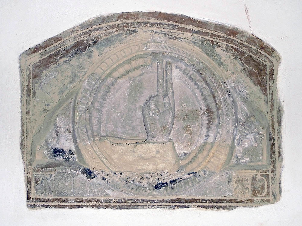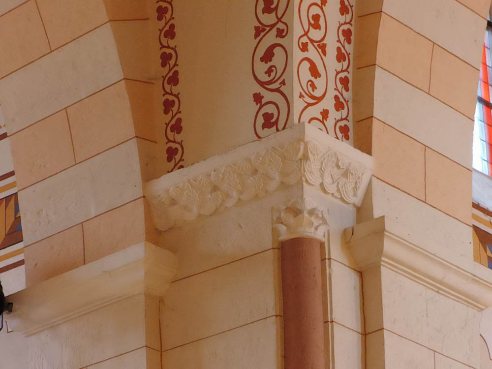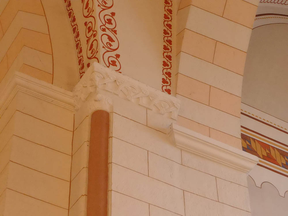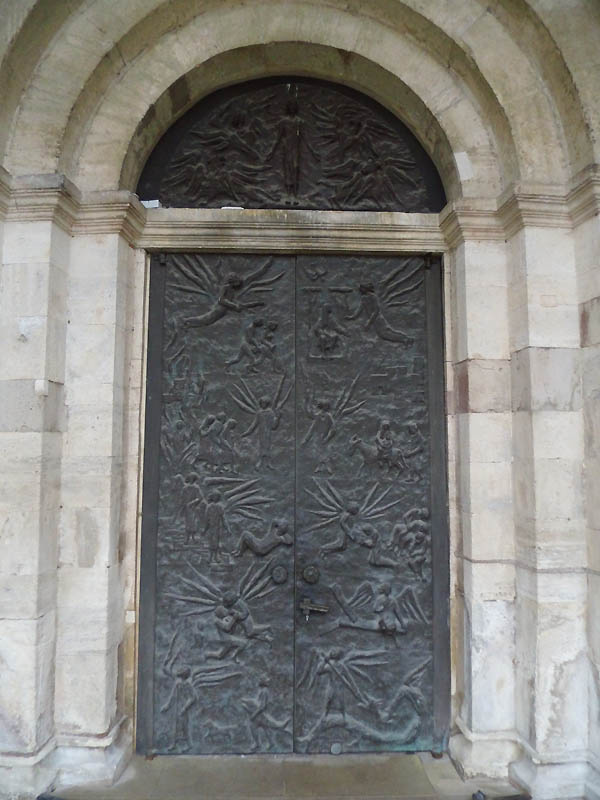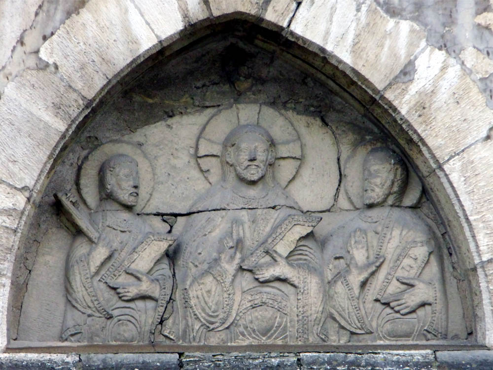 Ueber dem Portal der letzteren befindet sich ein Tympanon, auf welchem ein Relief noch aus der früh-romanischen Zeit mit Christus zwischen Petrus und Paulus sich befindet.