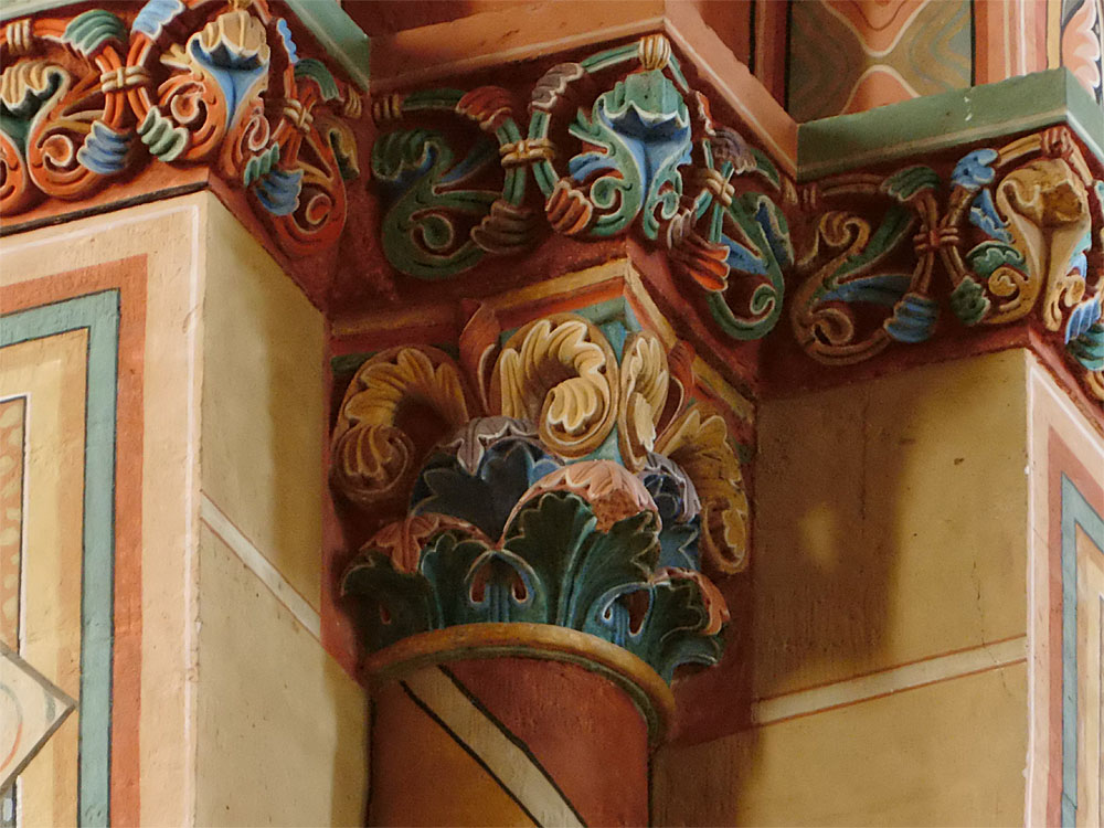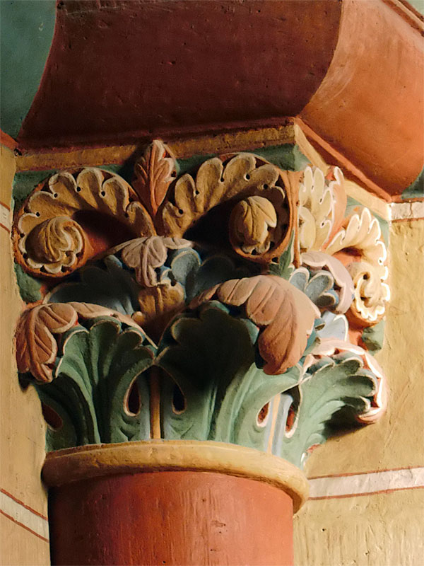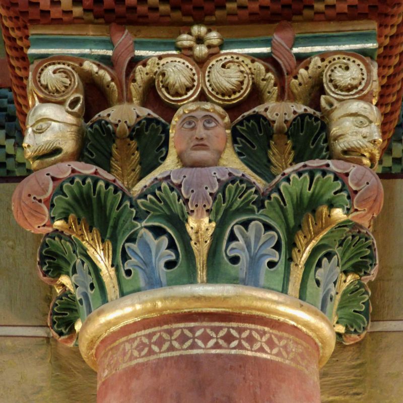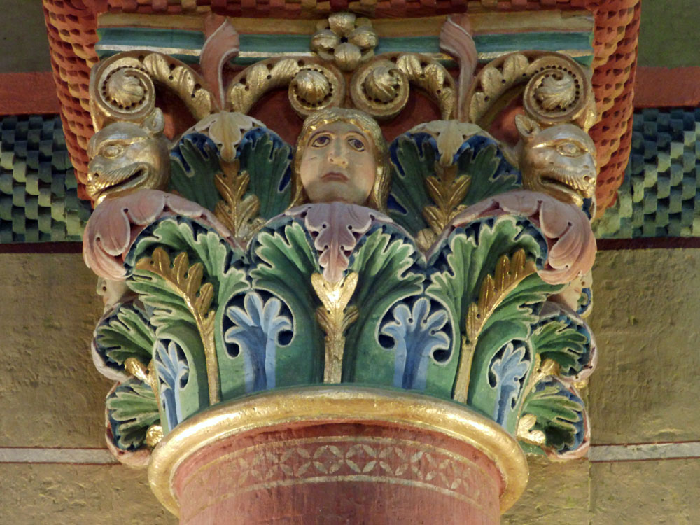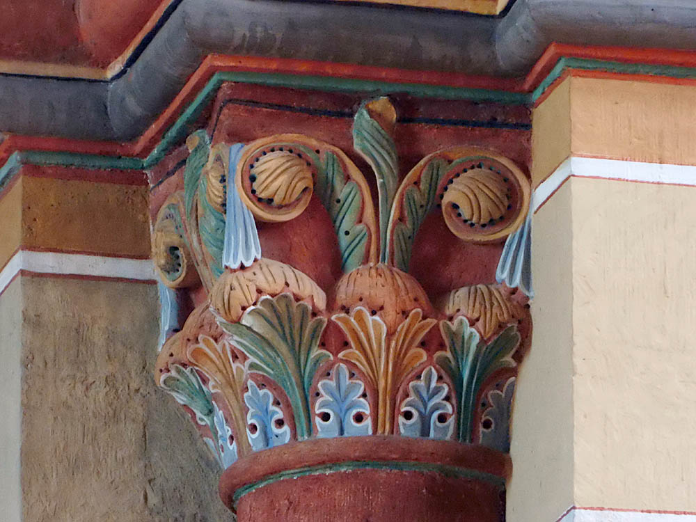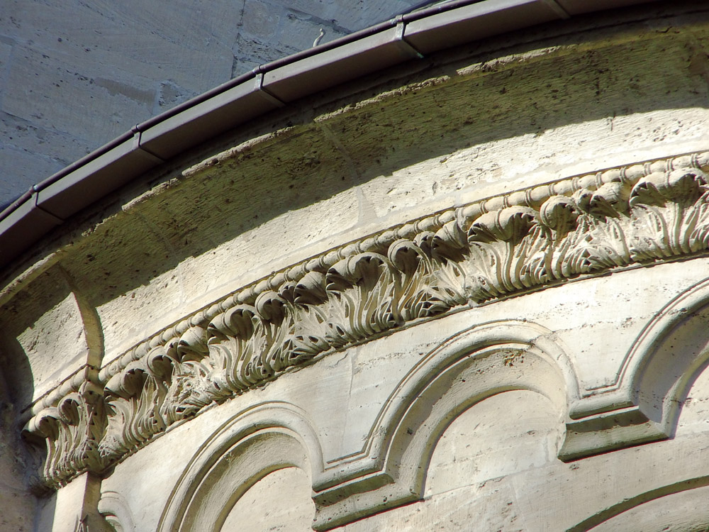 Sind auch die Symbole der christlichen Religion geblieben (Löwenportal und Fries an der Abside), so sind doch alle Einzelformen selbständig erfunden, ohne auf die Antike zurückzugreifen. Besonders die Hauptgesimse am Chor mit Bogenfries, Akanthusblattreihe und grosser Hohlkehle sind so schön disponiert, dass sie als formvollendet gelten können und nur ein weiteres Naturstudium dazu gehört, um auf dieser Grundlage die mustergültigen gotischen Hauptgesimse des XIII. Jahrhunderts zu schaffen.