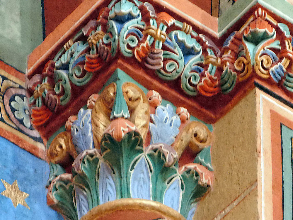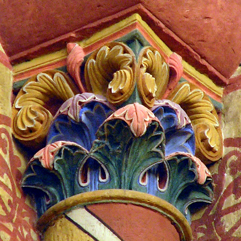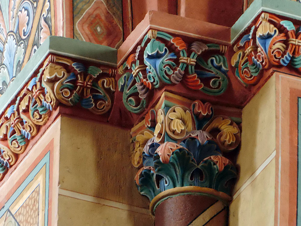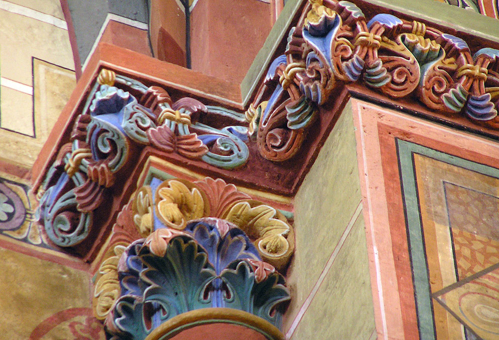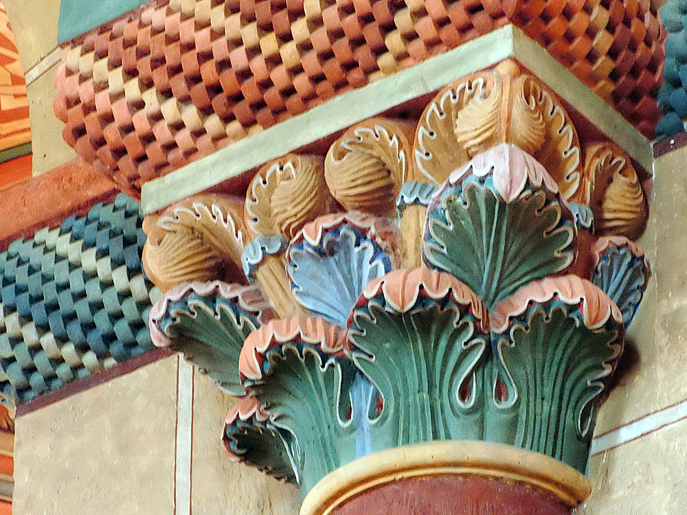 Sind auch die Symbole der christlichen Religion geblieben (Löwenportal und Fries an der Abside), so sind doch alle Einzelformen selbständig erfunden, ohne auf die Antike zurückzugreifen. Besonders die Hauptgesimse am Chor mit Bogenfries, Akanthusblattreihe und grosser Hohlkehle sind so schön disponiert, dass sie als formvollendet gelten können und nur ein weiteres Naturstudium dazu gehört, um auf dieser Grundlage die mustergültigen gotischen Hauptgesimse des XIII. Jahrhunderts zu schaffen.