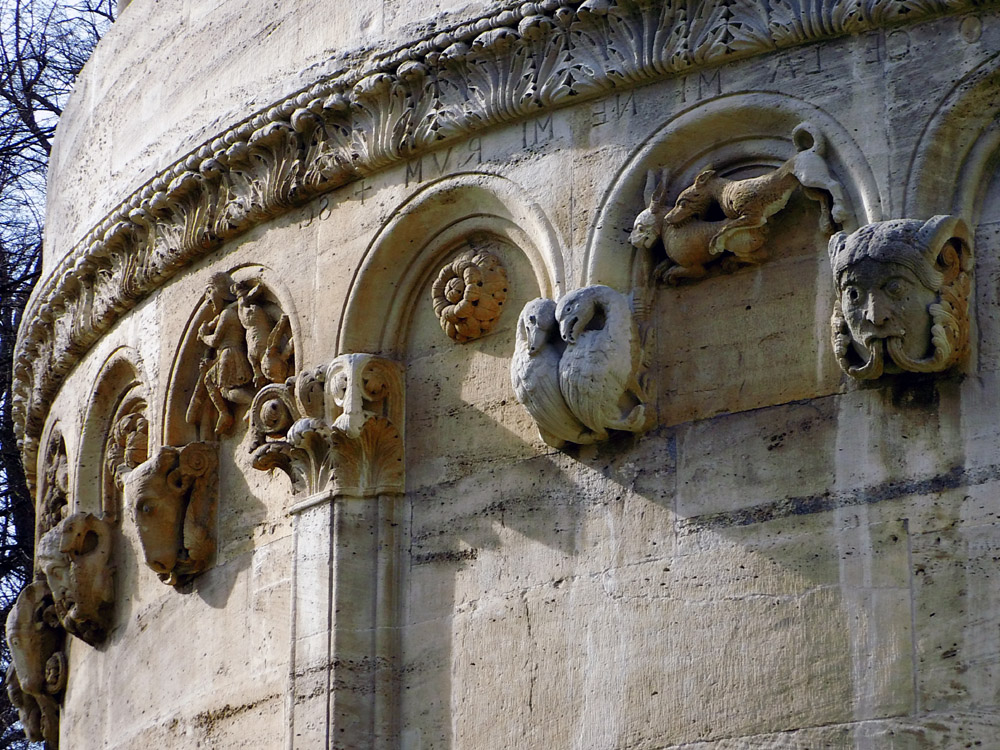 Die kleinen Figuren in dem Rundbogenfries wirken durch ihre sicher beobachtete organische Bewegtheit.