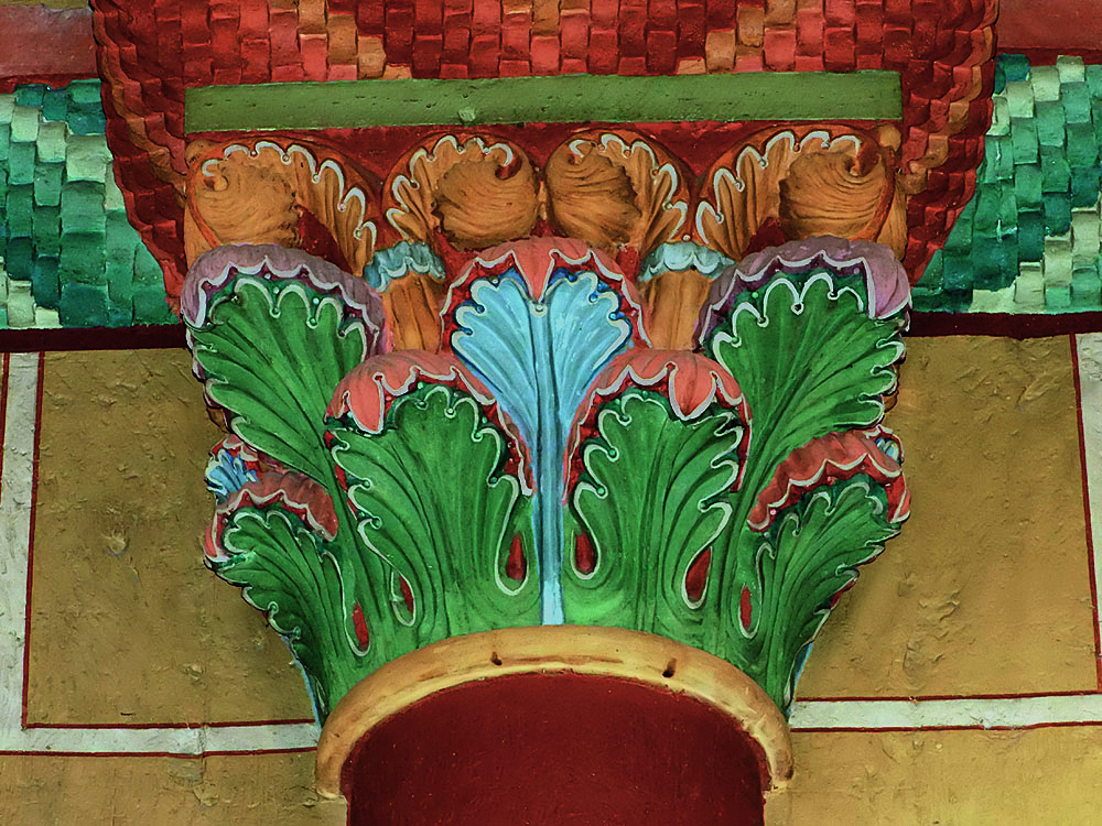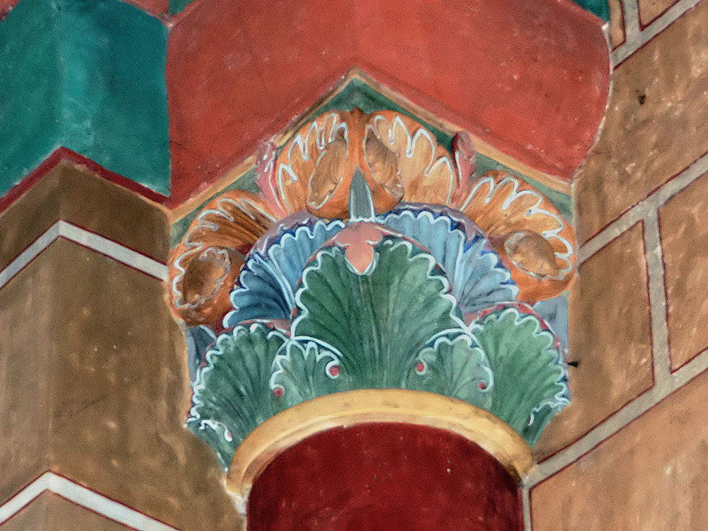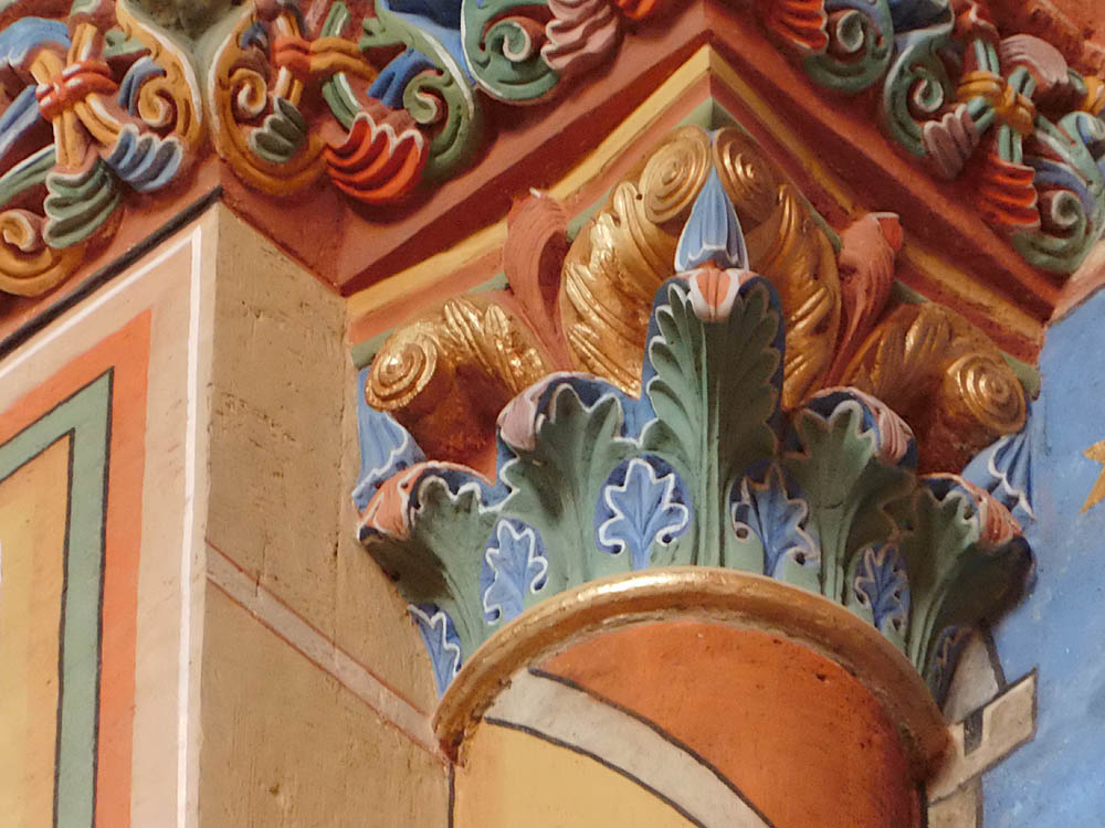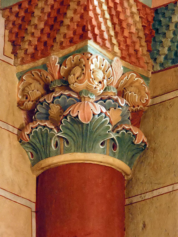 Die Profile des Sockels haben die konventionelle Form des attischen Säulenfusses verlassen und bestehen nur noch aus schrägen Hohlkehlen und Wulsten.“