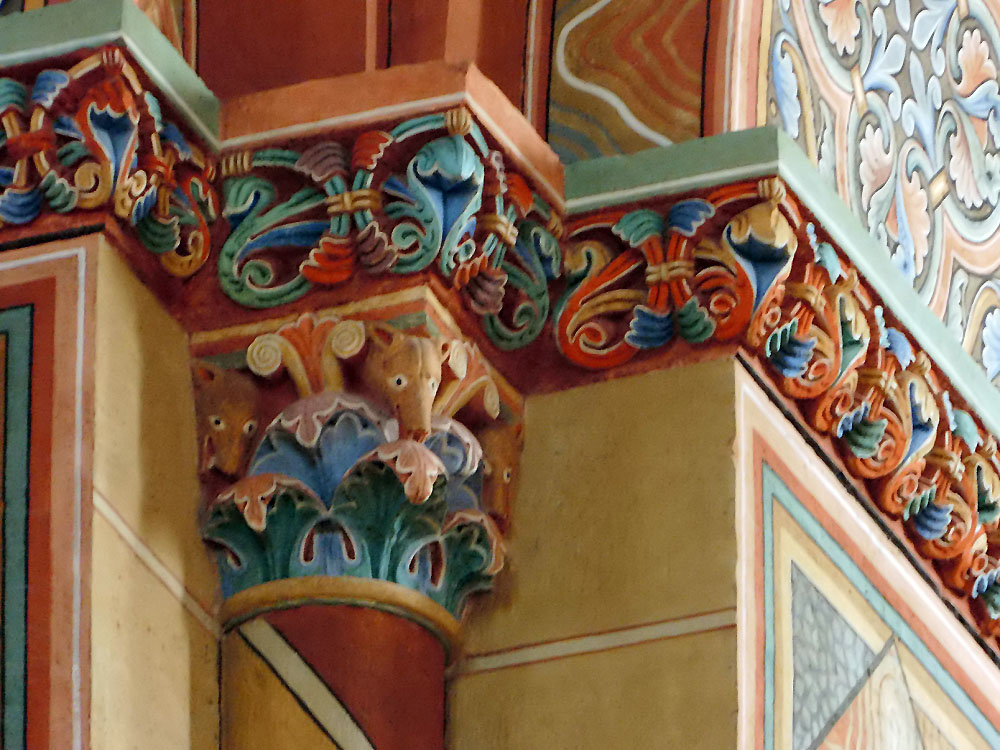 Da das Innere durch tüchtigen Ueberzug von Kalkweiße unterhalten ist, so sind Spuren von Wandmalerei nirgend sichtbar, obgleich zu vermuthen steht, daß Kaiser Lothar seine Kirche auch damit ausstattete. In dem gegenwärtigen Zustande, wo ein recht frischer weißer Ueberzug alle Wände, Pfeiler, Säulen ec. überzieht, macht das Innere einen fast nüchternen Eindruck; auch dienen die Gewölbe des Langhauses keinesweges zur Verschönerung.