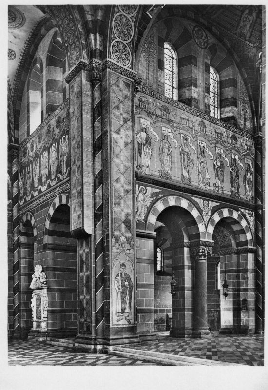 Da er erst im Zuge der Gesamtausstattung entstand, die nach dem Entwurf Essenweins von 1887 bis 1894 durchgeführt wurde, wird er wenig beachtet. Und doch beweist auch er, wie sehr bei dieser Ausgestaltung der Geist der Gründungszeit und des Gründers dieses einzigen Kaiserdomes des 12. Jh. berücksichtigt wurde.