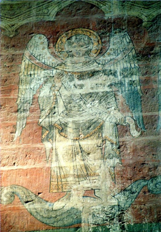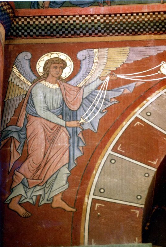Unterhalb des Apsidengewölbes haben drei Engel Platz gefunden, die mit einem Herrscherstabe als Sinnbild der Allmacht und Erhabenheit Gottes versehen sind.