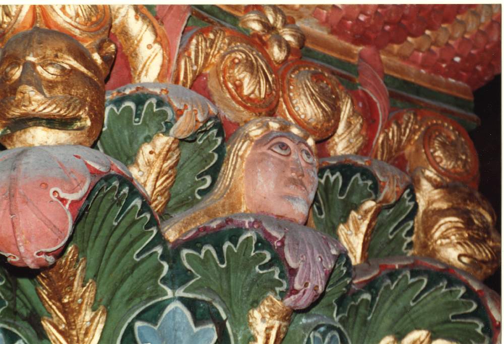 Über diesen Tugenden sieht man zwei Engel mit dem Gottessiegel; dicht unter jenen auf jeder Seite 3 Engel, goldene Weihrauchgefäße schwingend.