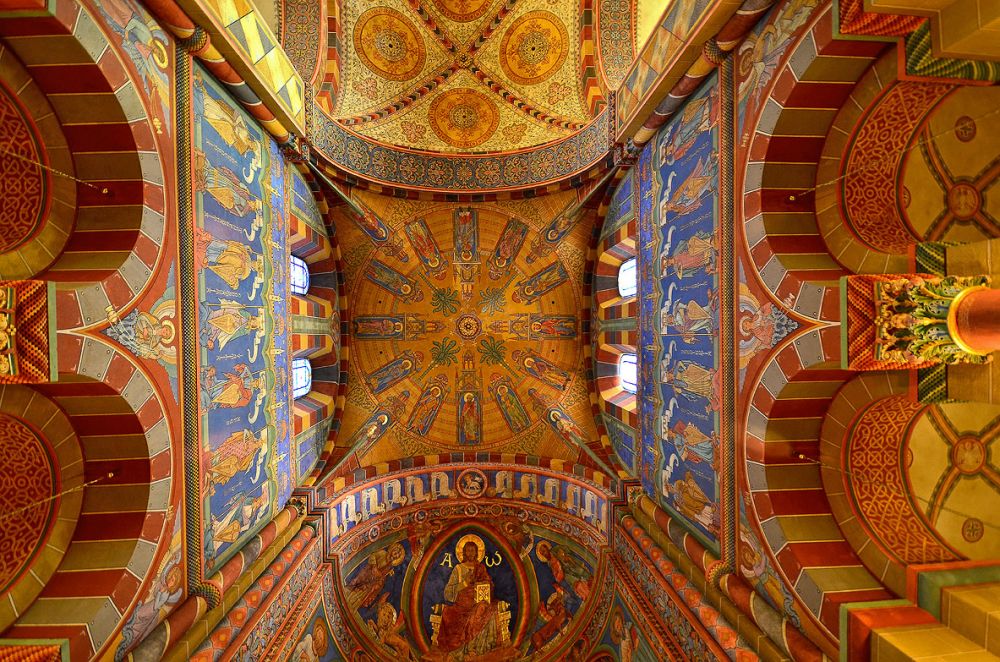 Die farbige Ausstattung des Domes durch Wand- und Glasmalerei in ihren Einzelteilen.