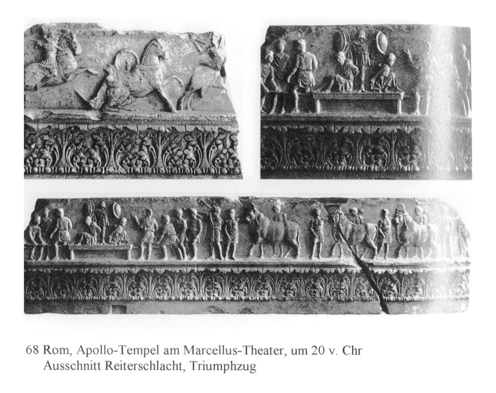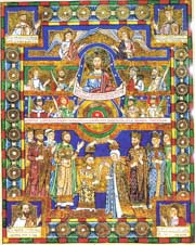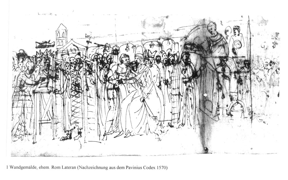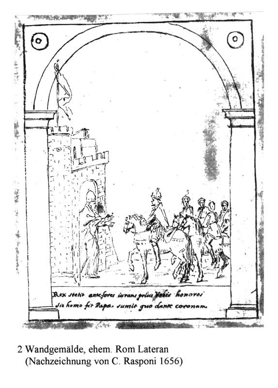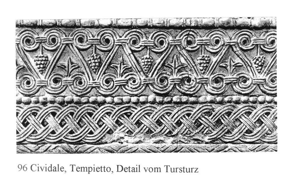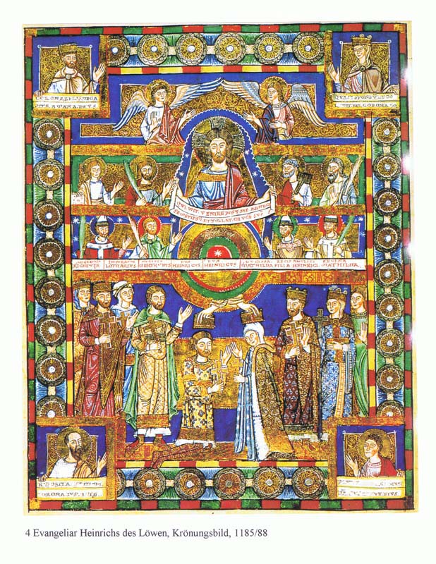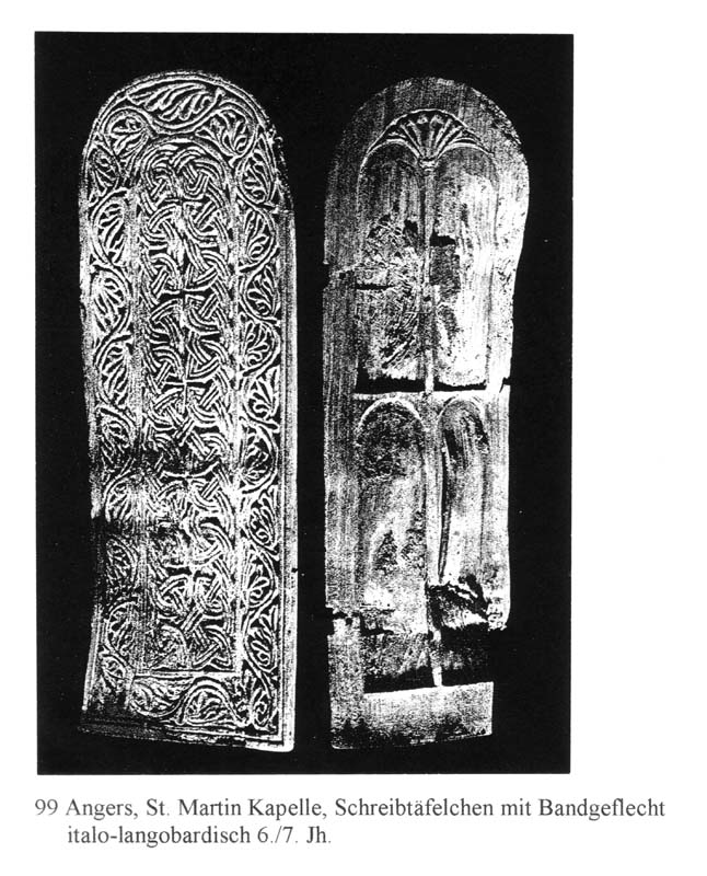 - Abb. 213a-c Ludwig der Fromme als christlicher Streiter, Wien, Österreichische Nationalbibliothek, Cod. 652, fol. 3v, 9. Jh.; Mathildenkreuz, Essen, Münsterschatz, 11. Jh.; König Demetrius-Zvojnimir (1076-88) oder sein Vorgänger, Steinrelief, Split, Taufkapelle, 11. Jh.