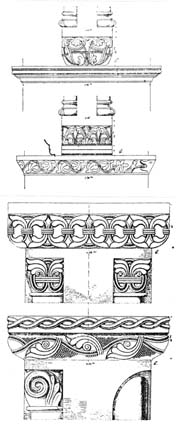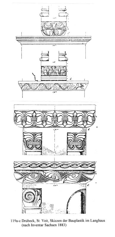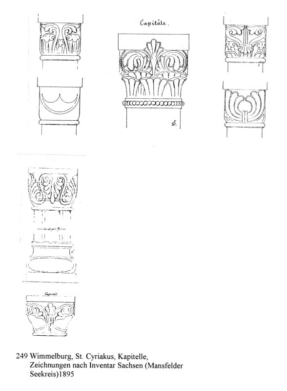 - Abb. 249 Wimmelburg, St. Cyriakus, Kapitelle, Zeichnungen nach Inventar Sachsen (Mansfelder Seekreis) 1895