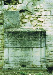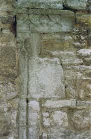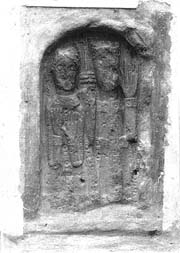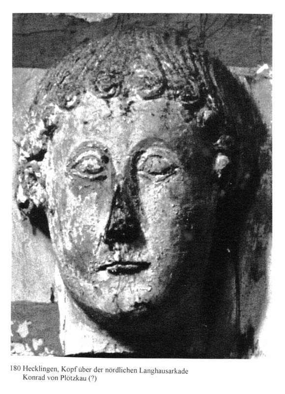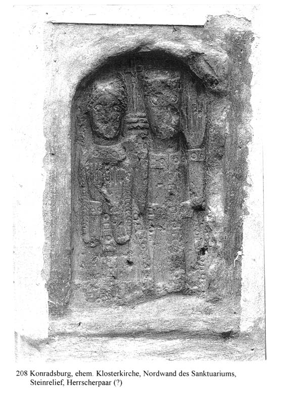 - Abb. 208 Konradsburg, ehem. Klosterkirche, Nordwand des Sanktuariums, Steinrelief, Herrscherpaar (?)