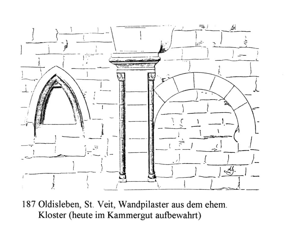 - Abb. 187 Oldisleben, St. Veit, Wandpilaster aus dem ehem. Kloster (heute im Kammergut aufbewahrt)