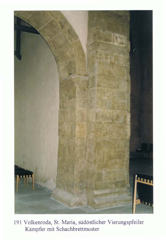 - Abb. 191 Volkenroda, St. Maria, südöstlicher Vierungspfeiler, Kämpfer mit Schachbrettmuster
