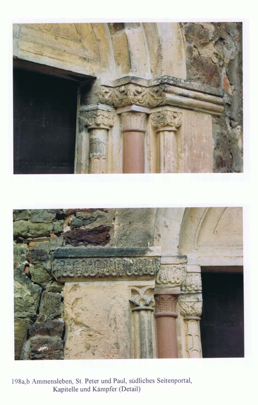 - Abb. 198a,b Ammensleben, St. Peter und Paul, südliches Seitenportal, Kapitelle und Kämpfer (Detail)