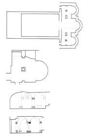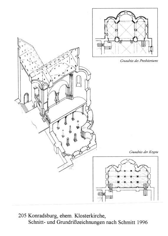 - Abb. 205 Konradsburg, ehem. Klosterkirche, Schnitt- und Grundrißzeichnungen nach Schmitt 1996