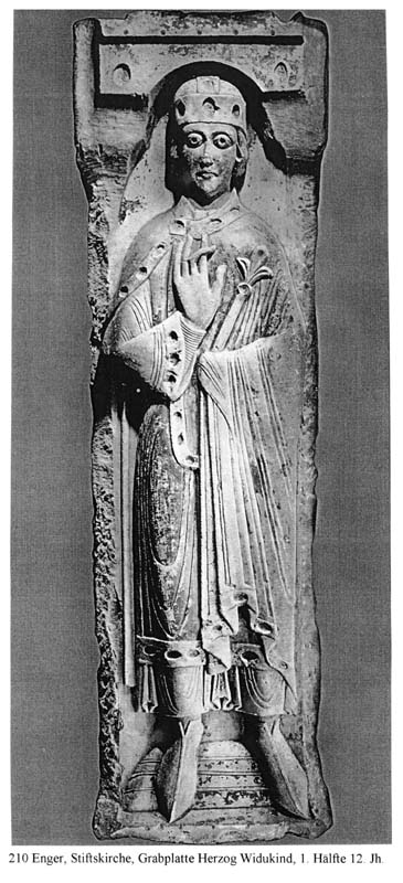 - Abb. 210 Enger, Stiftskirche, Grabplatte Herzog Widukind, 1. Hälfte 12. Jh.