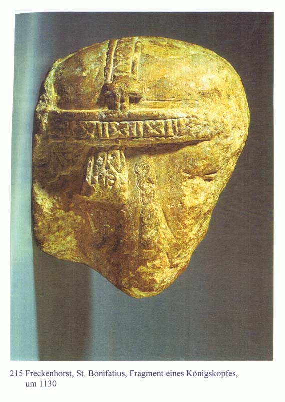 - Abb. 215 Freckenhorst, St. Bonifacius, Fragment eines Königskopfes, um 1130