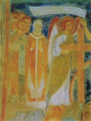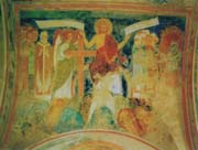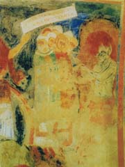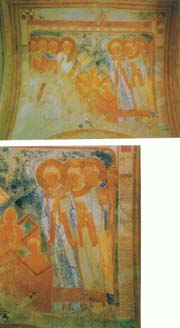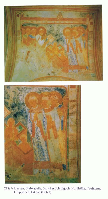 - Abb. 218a,b Idensen, Grabkapelle, östliches Schiffsjoch, Nordhälfte, Taufszene, Gruppe der Diakone (Detail)