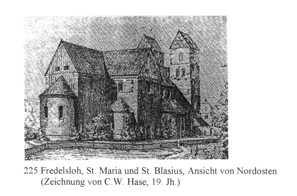 - Abb. 225 Fredersloh, St. Maria und St. Blasius, Ansicht von Nordosten (Zeichnung von C. W. Hase, 19. Jh.)