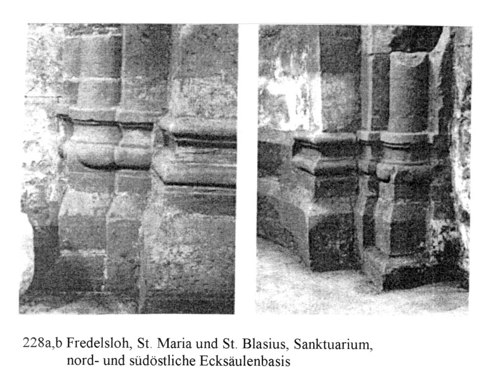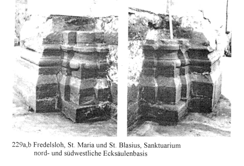 - Abb. 228a,b Fredersloh, St. Maria und St. Blasius, Sanktuarium, nord- und südöstliche Ecksäulenbasis