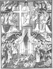 - Abb. 221 Idensen, Grabkapelle, Jüngstes Gericht, Gruppe der Gesegneten (Detail)