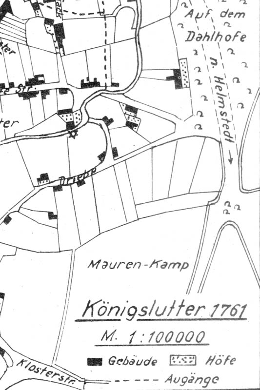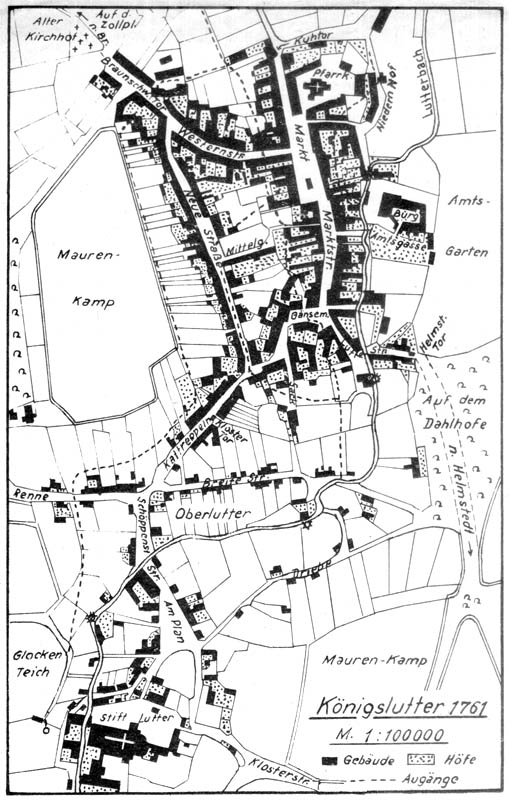 Königslutter bestand bis zum Jahre 1924 aus drei selbständigen Gemeinden, der Stadt, Oberlutter und Stift Königslutter. Die Stadt und das Kloster waren von einer Mauer umgeben, das dazwischen liegende Dorf Oberlutter, das immer zu den ärmsten des Landes Braunschweig gerechnet wurde, besaß keinerlei Schutz.