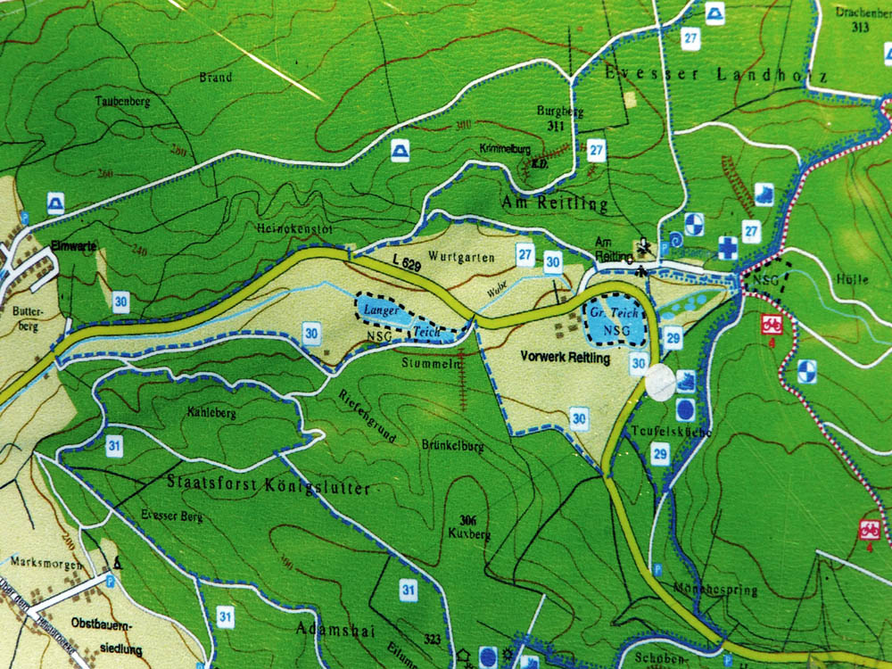 Die neuesten Wegeanlagen haben den Zugang zu diesen freundlichen, dicht beschatteten und zugleich die erheiterndste Aussicht gewährenden Bergen erleichtert. Von Königslutter aus läuft ein chaussirter Weg auf Scheppenstedt durch den Wald selbst, den der Freund der Natur reizend und belohnend finden wird. Längst schon dienten die geräumigen Forsten zur Förderung forstwirtschaftlicher Studien, und auch dem Botaniker und Mineralogen bieten sie ein lehrreiches Feld, wie denn die Encriniten, namentlich bei Erkerode, längst bekannt und gesucht sind. Der Wunsch, daß auch der Freund der