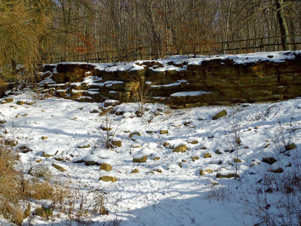 kunden von Comthuren und Brüdern des Ordens zur Elmsburg ausgestellt. Ob der Ordenssitz innerhalb der vielumfassenden Wälle der vormaligen Pfalz oder am Abhange der Elmes belegen gewesen, ist zweifelhaft; die Besitzungen des Ordens lagen aber zerstreuet den Wald entlang und erstreckten sich bis an die Ruinen der alten Pfalz, wo noch jetzt eine in den Wald sich erstreckende Ackerfläche den Namen des Elmsburger Feldes führt. Daß der Ordenssitz nicht der erste Bau an jenem Platze war, geht aus den sich darauf beziehenden Urkunden hervor, wonach dem Orden ein schon vorhanden gewesener Bau übertragen worden.