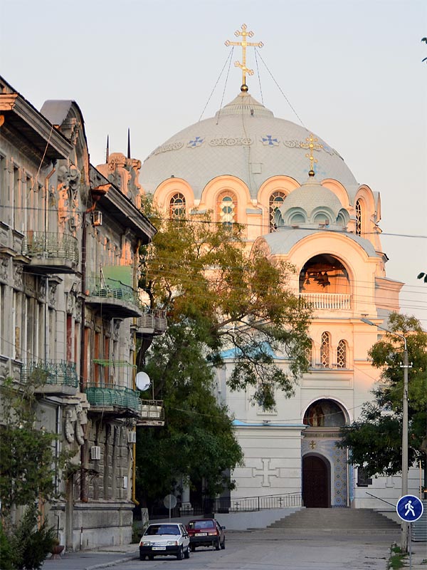 Der am meisten nach Westen gestreckte Theil, der Chersonesus Trachea der Alten ist ein vollkommen flaches Land, das sich von der Mitte der Halbinsel nach der Westspitze zu sanft bis zum Meeresspiegel herabneigt. Ziemlich enttäuscht blickt der Reisende nach den uninteressanten Gestaden, die sich ihm hier bieten und nur die südöstlich herüberschauenden Berge trösten ihn, Schöneres verheißend. Bis zu dem Leuchtthurm, der die äußerste Spitze des Chersones ziert, streicht man lange an öder Küste nach Süden hin, dem Hafen von Eupatoria und dem stark beschützten Eingange zur Bucht von Sewastopol vorüber. Da endlich hebt sich die Küste höher und malerischer, das alte Parthenion, das Vorgebirge der Jungfrau, tritt hervor, auf dem einst der Tempel des Orestes stand, und nachdem man dieses umschifft, erblickt man das an den Felsen geschmiegte Kloster des heiligen Gregorius an der Stelle, wo früher der Tempel der Diana gestanden, in dem