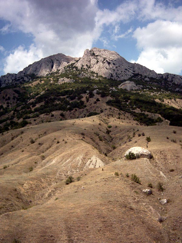 Die hohen Gebirgswände dieser Küste darf man aber nicht etwa mit dem Abfalle der Alpen nach Italien oder dem der Pyrenäen nach Frankreich zu vergleichen, denn die Bergkette der Krim ist weder so großartig, noch so verschieden in der Form, wie jene Gebirge; auch fehlen ihr die tiefen Thäler und Schluchten und der Schmuck reicher Waldmassen; sie zeigt immer nur ihre kahlen grauen Felsenpartien — und nur in der Nähe gesehen, wo die Einzelnheiten mehr ins Auge fallen, bieten sich schöne, oft sogar entzückende Landschaften.
