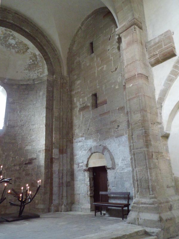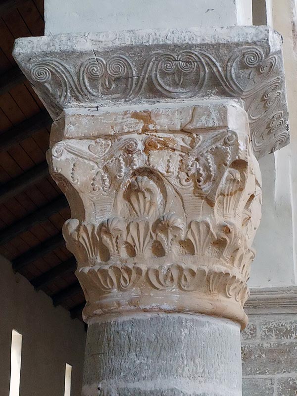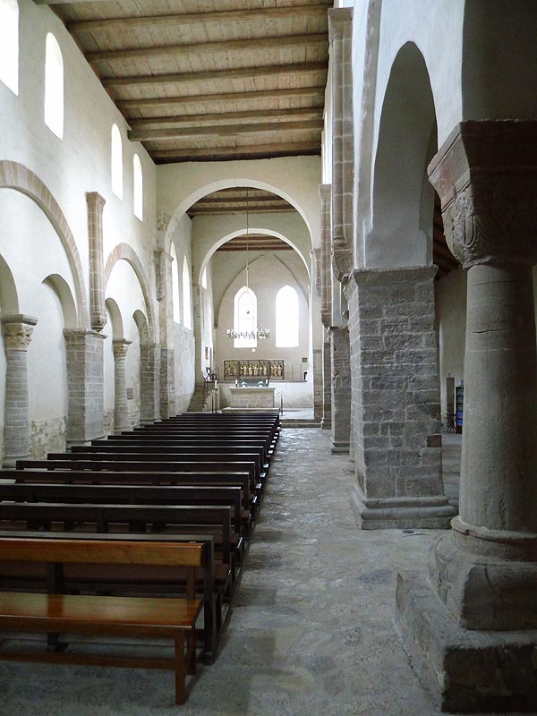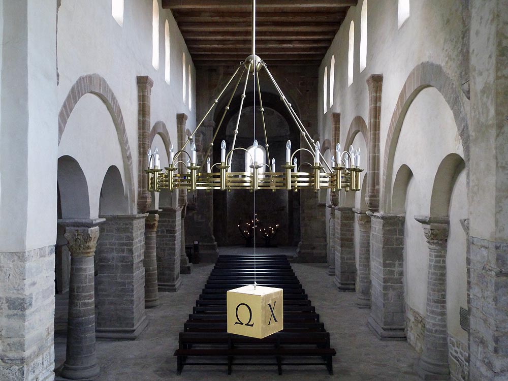 Für die ursprüngliche Anlage dieser Kirche sind demnach vornehmlich nur noch die Bogenstellungen des Schiffes interessant. Hier wechselt je eine Säule mit einem viereckigen Pfeiler, so daß auf jeder Seite drei Säulen und zwei Pfeiler zwischen ihnen befindlich sind. Gegenwärtig sind nur noch die Pfeiler (unter sich und mit den Wandpfeilern, welche die Bogenstellungen beschließen) durch große Halbkreisbögen verbunden; die Säulen stehen frei zwischen ihnen, ohne etwas zu tragen. Unstreitig deutet dies auf eine ähnliche Einrichtung