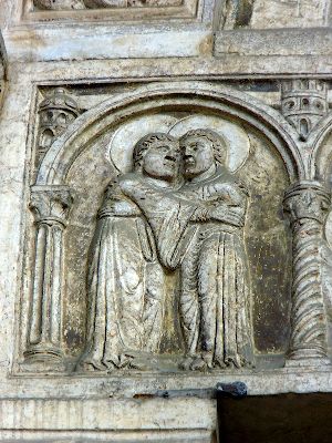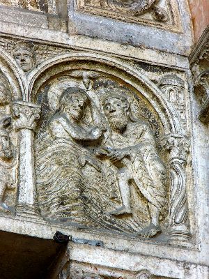 In den Architravreliefs ist die Umarmung der beiden Frauen überaus innig, sehr natürlich
