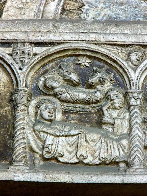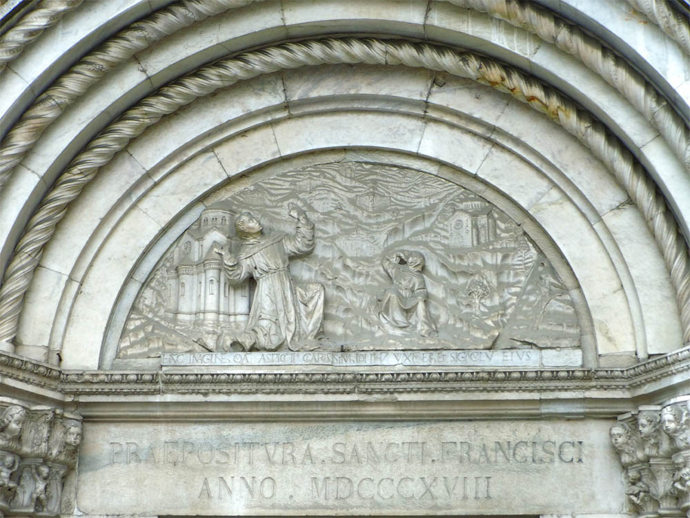 Gallerie kleiner Rundbogenarcaden in Relief dekorirt, innerhalb derselben ist die Geschichte des heiligen Zeno dargestellt.