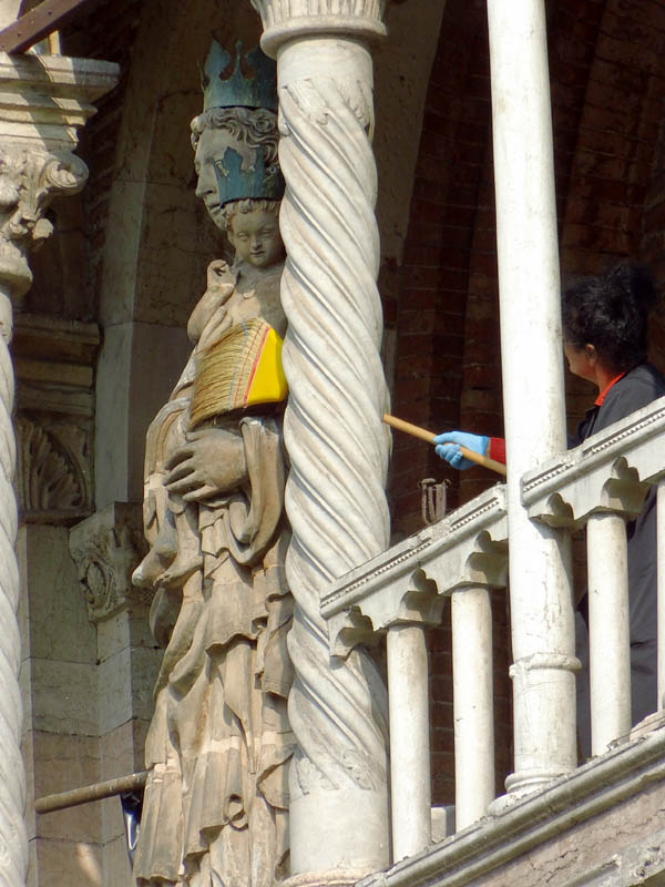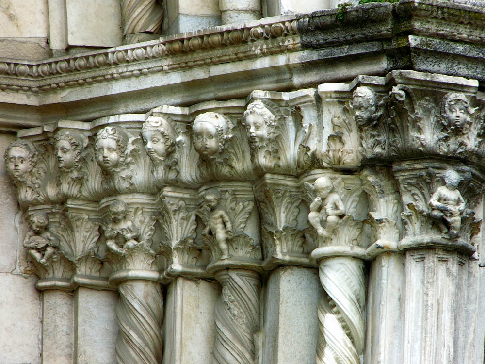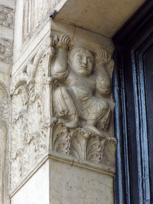 Dieser Portalbau ist noch weniger sorgfältig gearbeitet als der am Dom zu Verona. Bei beiden werden wir eine starke Mitarbeit von Gehülfen annehmen dürfen, da wohl die wachsende Zahl der Aufträge dem Meister nicht mehr gestattete, so sehr bis ins Einzelne alles Selbst auszuführen wie in Ferrara.