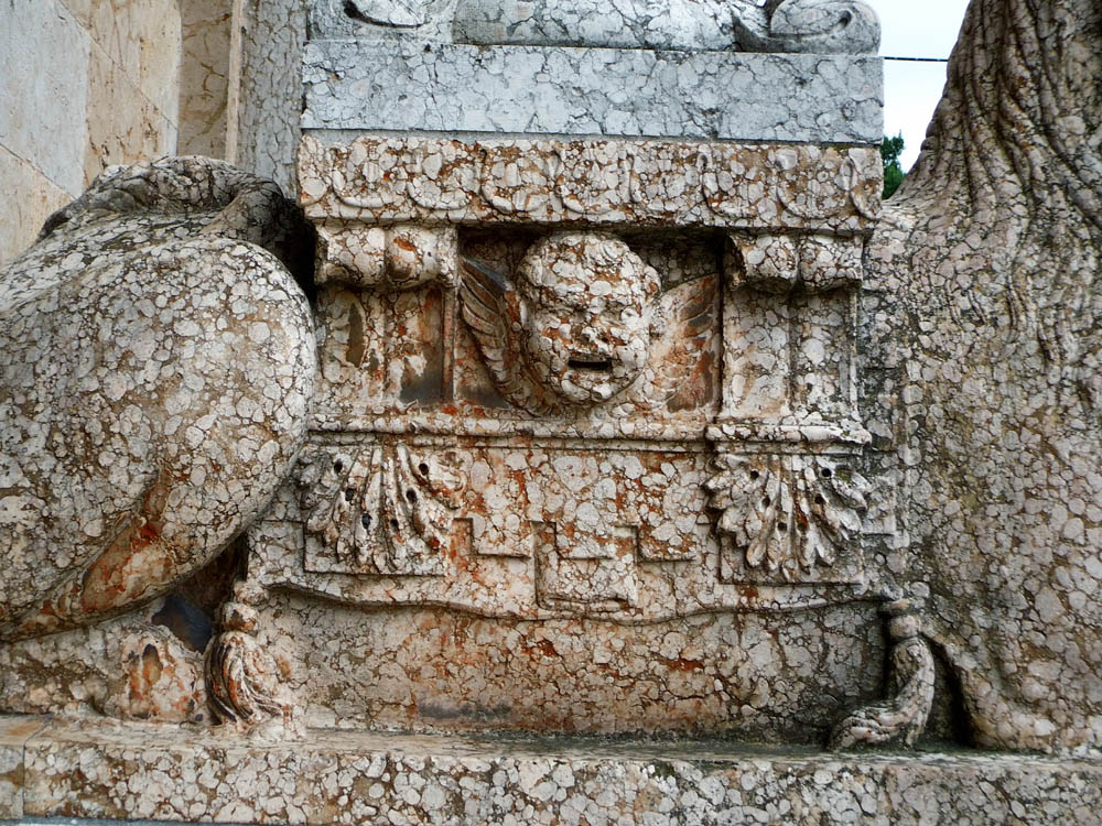 Vom Figürlichen sind am besten die je zwei Johannes an der Vorderwand gearbeitet, während die Skulpturen der Achitrave ziemlich plump und ausdruckslos sind.