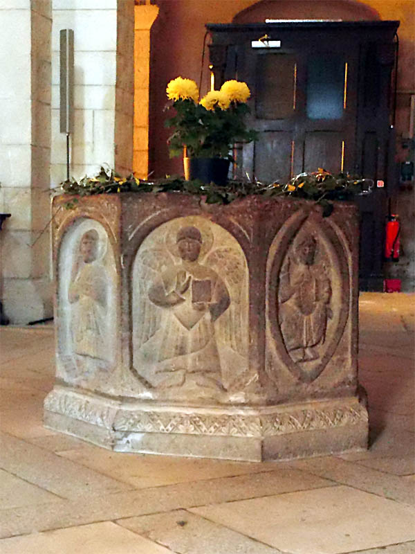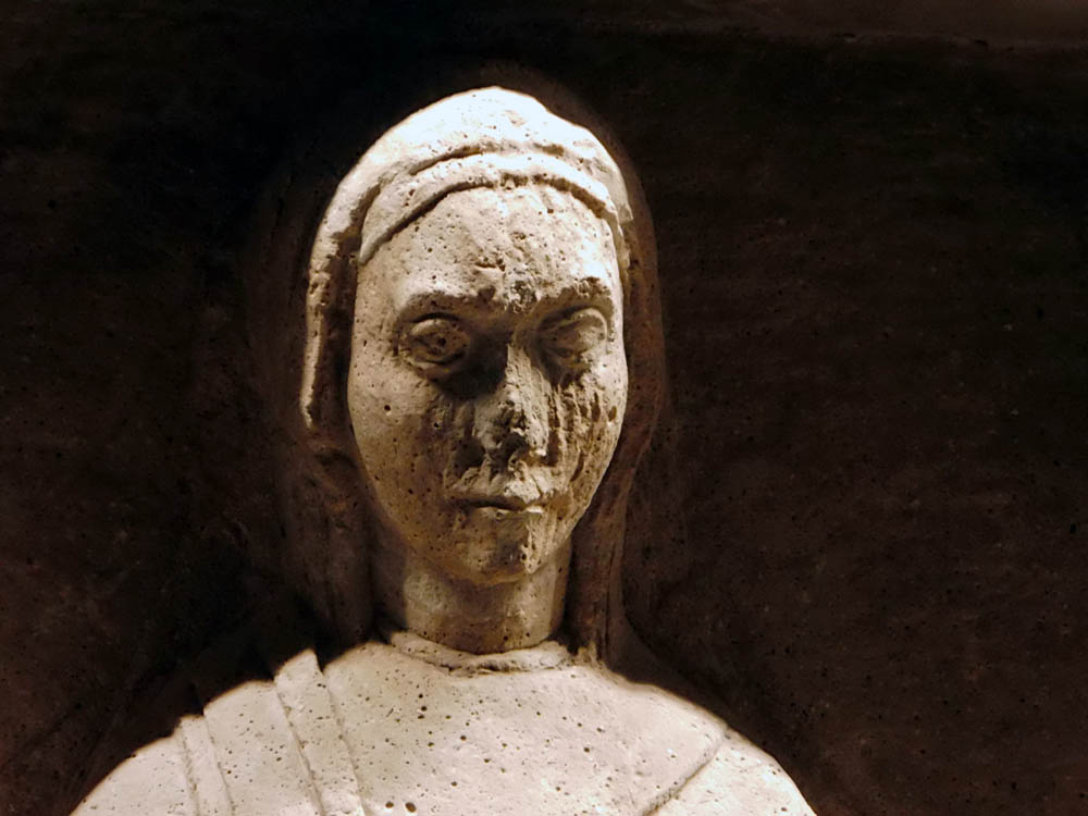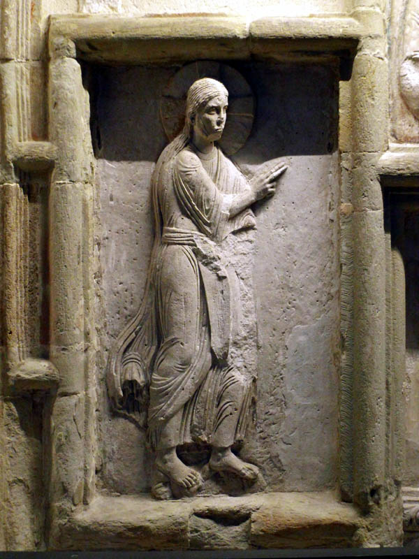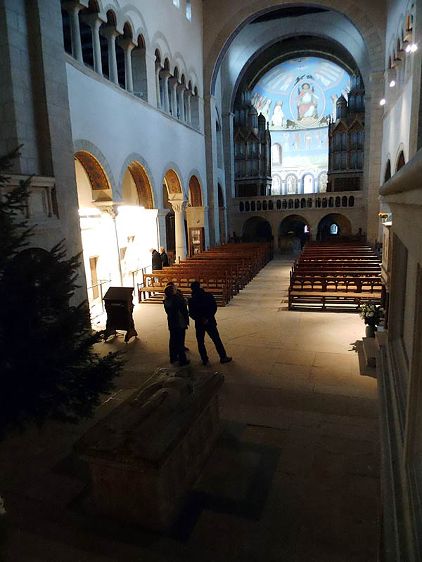 sind und genau in ihre Felder passen, können sie nur für das hl. Grab angefertigt sein. Sie stimmen mit den Stuckskulpturen im Innern stilistisch völlig überein. Auch aus stilistischen Gründen sind diese Stuckarbeiten später als die Steinskulpturen entstanden und sind ebenso eine Zutat in früher Zeit wie die kleine Verbindungstür. Die beiden Halbsäulen der Tür haben Kapitelle und Basen, die im spätromanischen Kreuzgang wiederkehren.