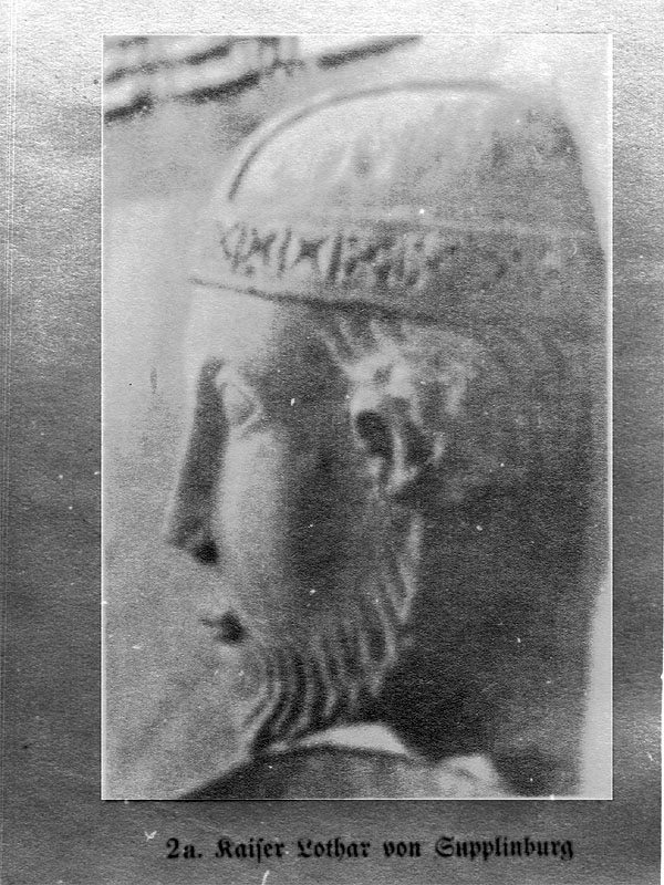 Nehmen wir an, daß Irmgard vor oder nach dem Tode des Kaisers († 1137) die Urheberin dieser plastischen Bildwerke war, - und dafür scheint alles zu sprechen – dann bestände keine Schwierigkeit, die Köpfe 1, 4 und 5 als Grabmäler ihrer nächsten Angehörigen zu deuten: ihres Bruders Konrad, ihres Vaters Helperich und ihrer Mutter Adela. Nachträgliche reihenweise Herstellung von Grabmälern durch eine Hand sind in jener Zeit nichts seltenes, wie nah liegt zeitlich und räumlich das Quedlinburger Beispiel um 1130! Die gekrönten Häupter können aber nicht von Grabmälern stammen, Kaiser oder Könige sind in Hecklingen nicht begraben worden. Die bei Beckmann erwähnte dänische Königin Jutta 16) kommt nicht in Frage.