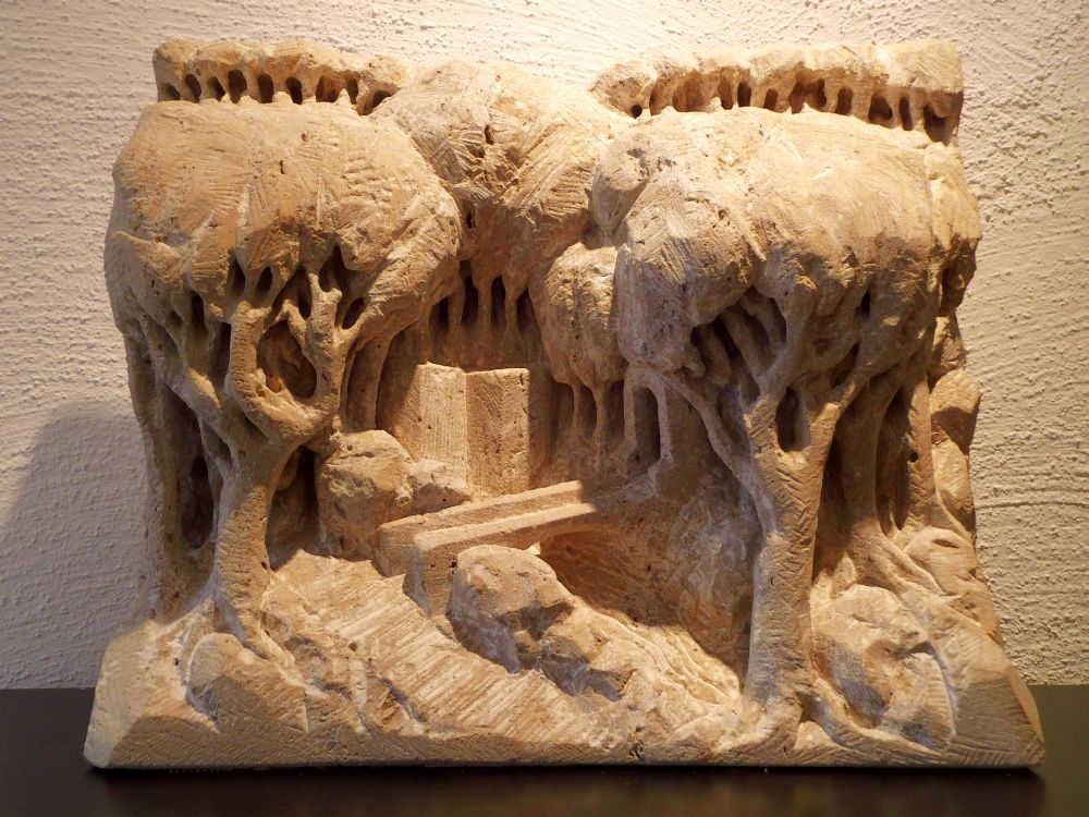 Der Steinmetzschulleiter „spielt“ mit den Formen und bringt Stein am Ende dazu, eine Geschichte zu erzählen.