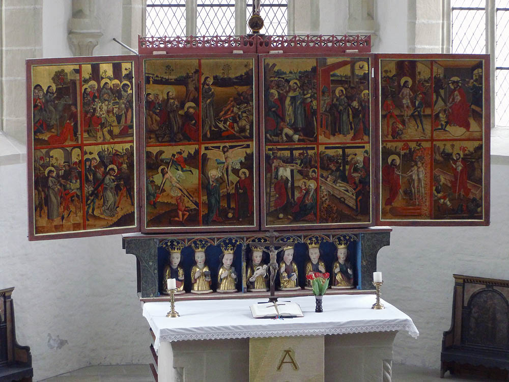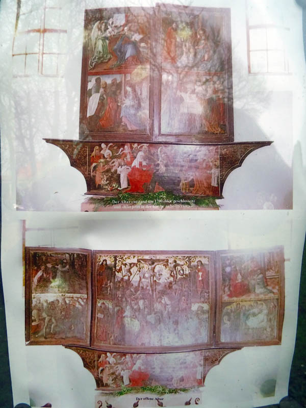Das Inventar der ehemaligen Kirche befindet sich zum größten Teil in der Kirche in Stötterlingen. So auch der Altar der auf den Fotos zu sehen ist.
