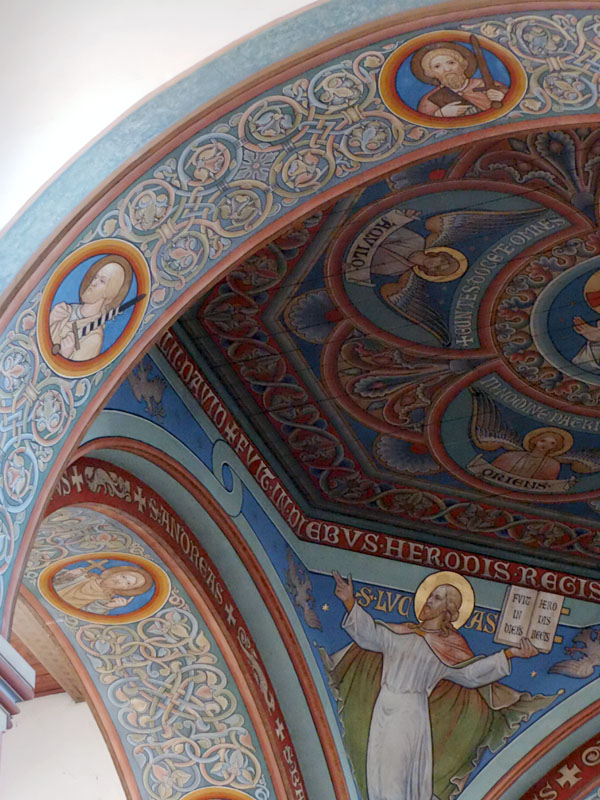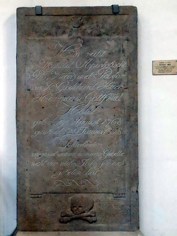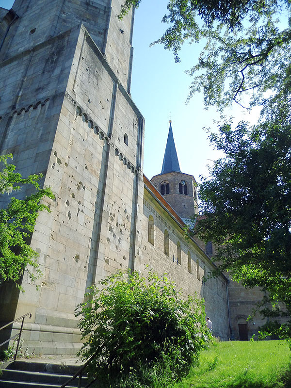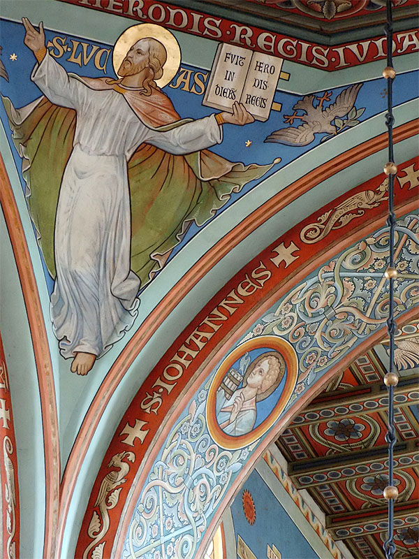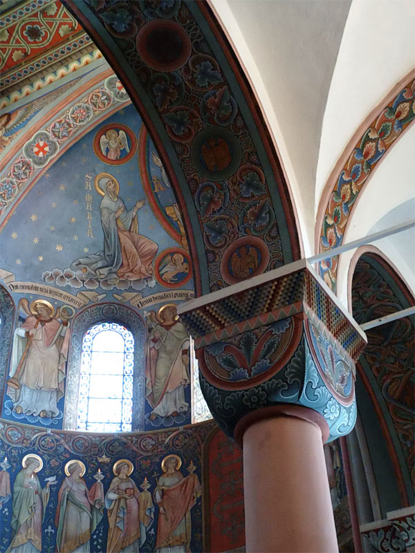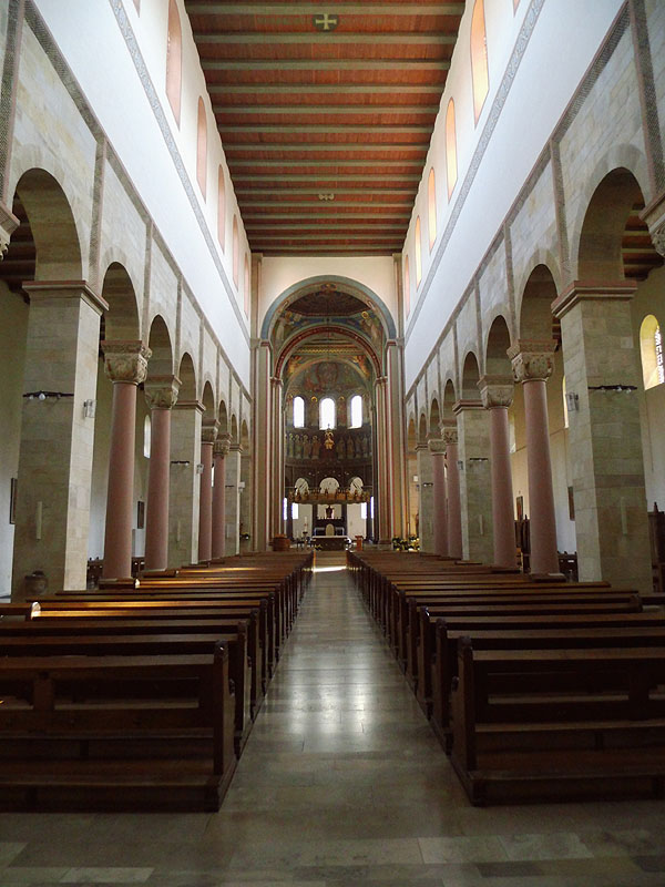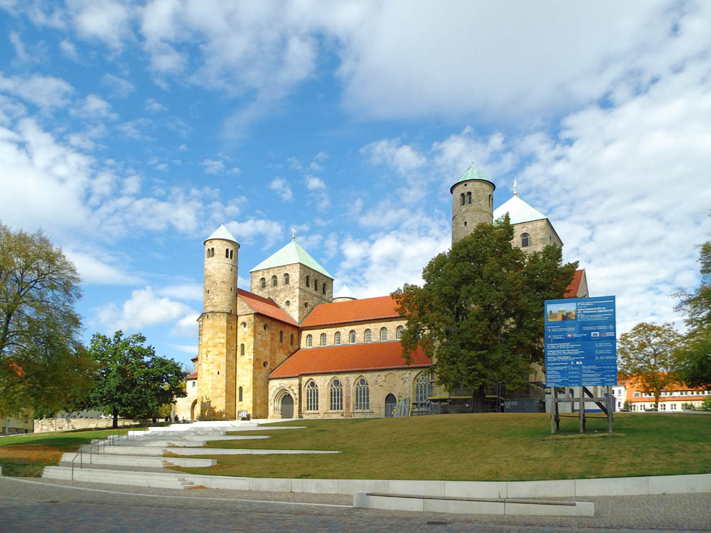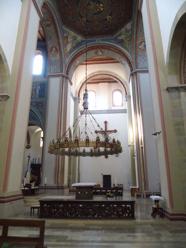 Bei den Erwachsenen verfingen vor allem auch die eindrucksvollen Bilder des Referenten. Sie führten nicht nur das Umfeld des Heiligen Bernward plastisch vor Augen, von den großen ottonischen Herrschergestalten und Theophanu bis zu Godehard. Sie zeigten besonders auch in bunter Farbenpracht das wohl wichtigste Lebenswerk des Bischofs aus dem ostfälischen Adelsgeschlecht: die heute zum Weltkulturerbe zählende Hildesheimer Michaeliskirche, die zugleich Bernwards Grabstätte birgt. Ihrer aus dem mittelalterlichen Rom inspirierten Schönheit konnte sich wohl keiner der dichtgedrärıgt sitzenden Besucher entziehen. Und auch der Anblick des Bernwardkreuzes, der ehernen Säule und anderer Kostbarkeiten tat seine Wirkung, gefördert durch die anschauliche Vortragsweise Pfarrer Behrendts.