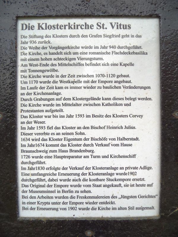 Quelle: C. F. Ranke, F. Kugler: Beschreibung und Geschichte der Schloßkirche zu Quedlinburg und der in ihr vorhandenen Alterthümer. nebst Nachrichten über die St. Wipertikirche bei Quedlinburg, die Kirche zu Kloster Gröningen, ... S. 99 bis 104. Berlin 1838. Verlag George Gropius