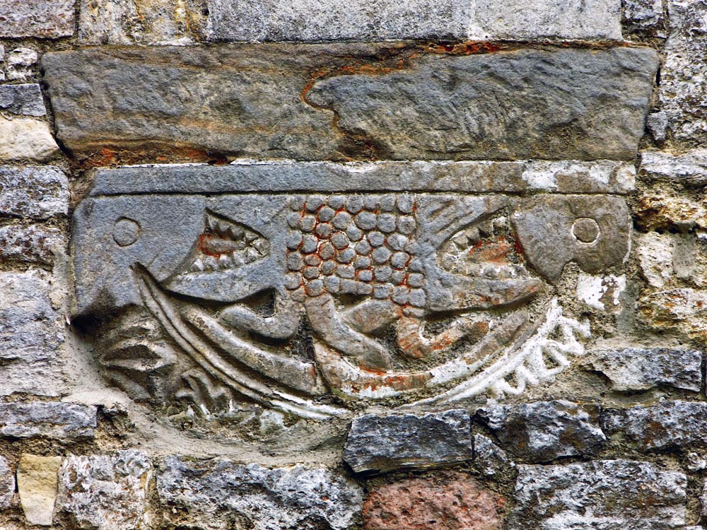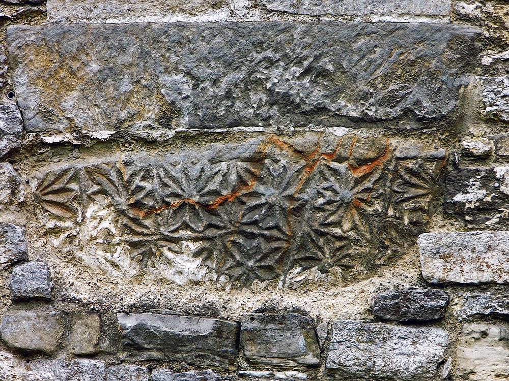 von einer Rankenverzierung, in deren Blättern man bereits Motive der eigentlich byzantinischen Kunst erkennt.