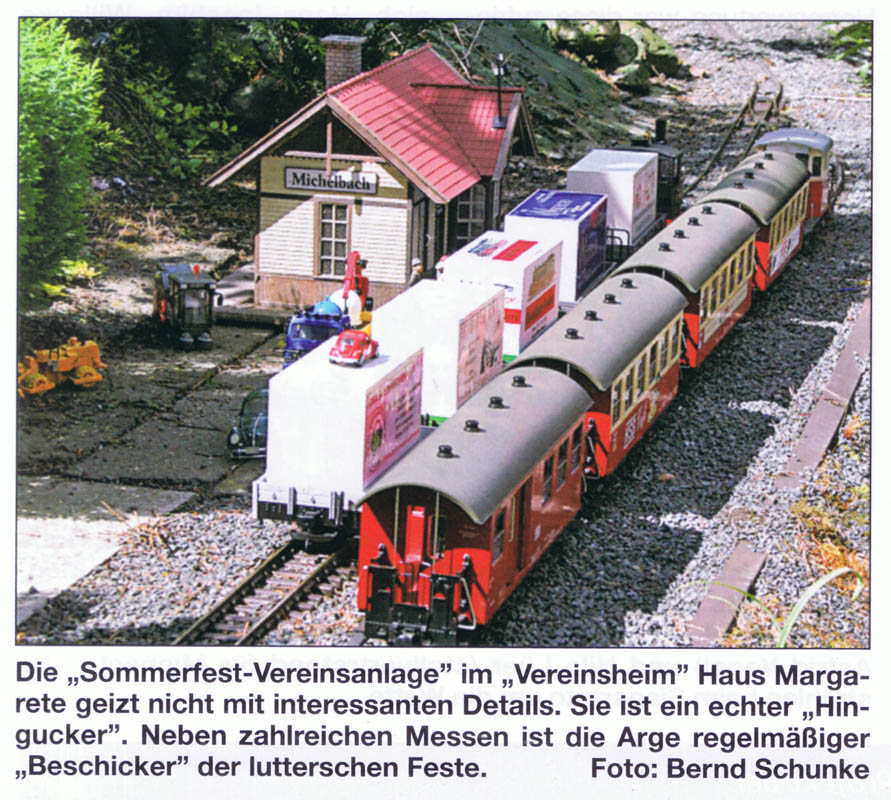Neben einem interessanten Fahrbetrieb auf der LGB-Anlage gibt es beim Sommerfest einen „Trödelmarkt unter Bäumen” sowie Musik und Unterhaltung, für Kinder einen „LGB-Kinderspieltisch” und einige Überraschungen. Natürlich können sich die Besucher auch auf den leckeren hausgebackenen Kuchen der Stutes freuen.