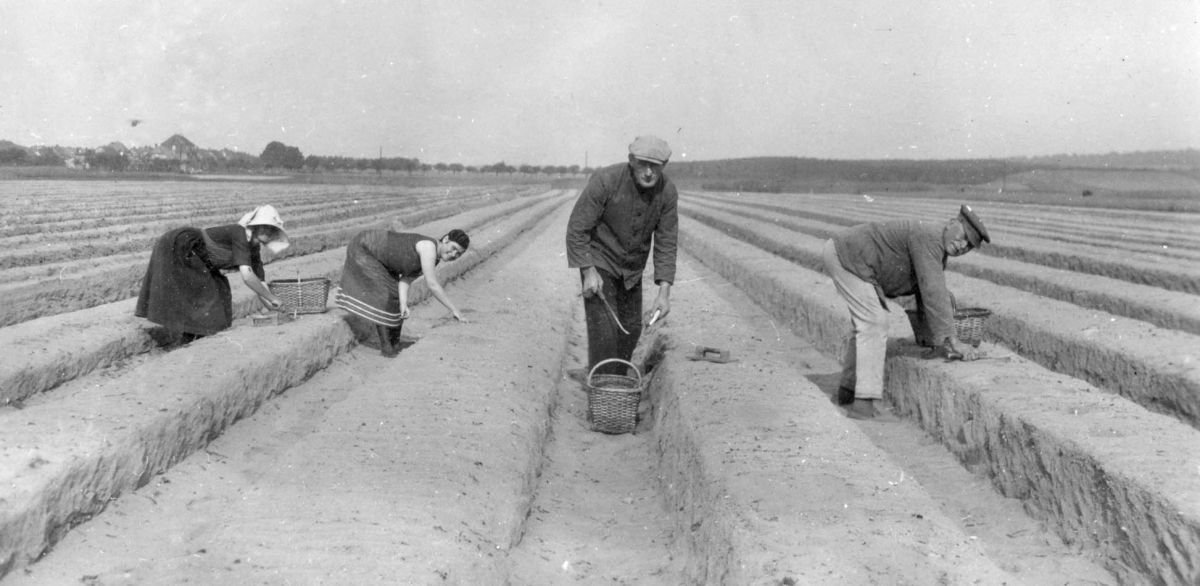 1804 kam der Franzose Apert zum ersten Mal auf die Idee, den Spargel zu konservieren. 1840 entstanden dann die ersten deutschen Betriebe, die das Gemüse in Dosen haltbar machten. 1861 schließlich ermutigte der Braunschweiger Konservenfabrikant Gustav Grahe die Gärtner und Landwirte zur "feldmäßigen Anlage von Spargel" und verpflichtete sich zur Abnahme ihrer Ernte, was einen enormen Aufschwung des Spargelanbaues in dieser Region zur Folge hatte. Betrug 1874 die Braunschweigische Anbaufläche noch 125 ha, so war sie 1913 auf 3500 ha gestiegen. 1885 gründeten die Braunschweiger Spargelanbauer erstmals eine "Spargel AG", um die Produkte der Mitglieder bestmöglich zu verwerten. 50 Prozent der gesamten damaligen Anbaufläche gehörte den Mitgliedern der Spargel AG. Die Erzeuger-Organisation sah zu jener Zeit jedoch die Belieferung von Konservenfabriken als vordringliches Ziel an. An diese Zeit erinnern noch die Gebäude der ehemaligen Konservenfabrik in der Lindenstraße, die bis Anfang der 70er Jahre des letzten Jahrhunderts betrieben wurde. Einige Frauen aus Lauingen waren dort beschäftigt und haben so manches Kilo Spargel geschält.
