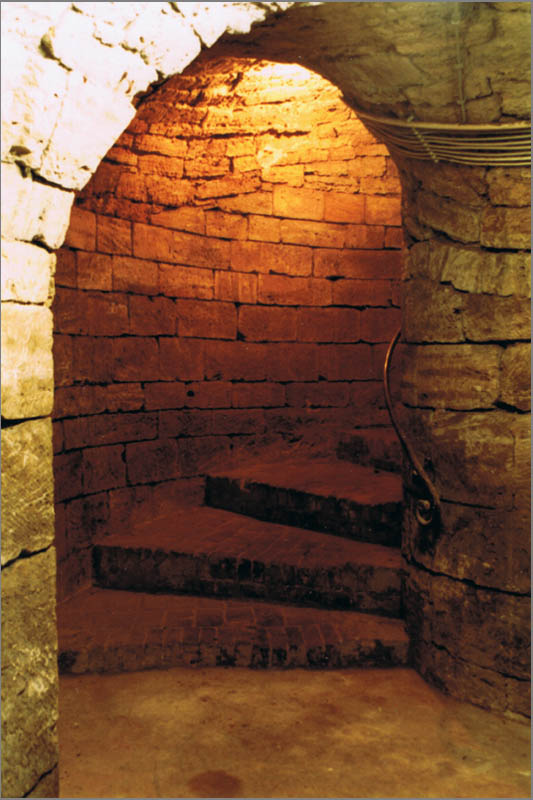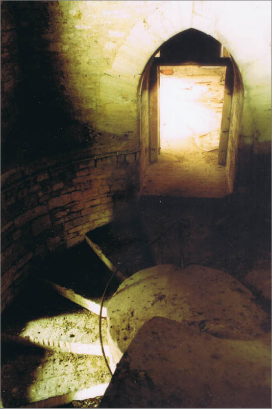Durch Einbau von Vitrinen an den Stellen, wo während des Krieges Wertvolles eingemauert war, ließe sich die Turmtreppe dieser Nutzung gut anpassen.